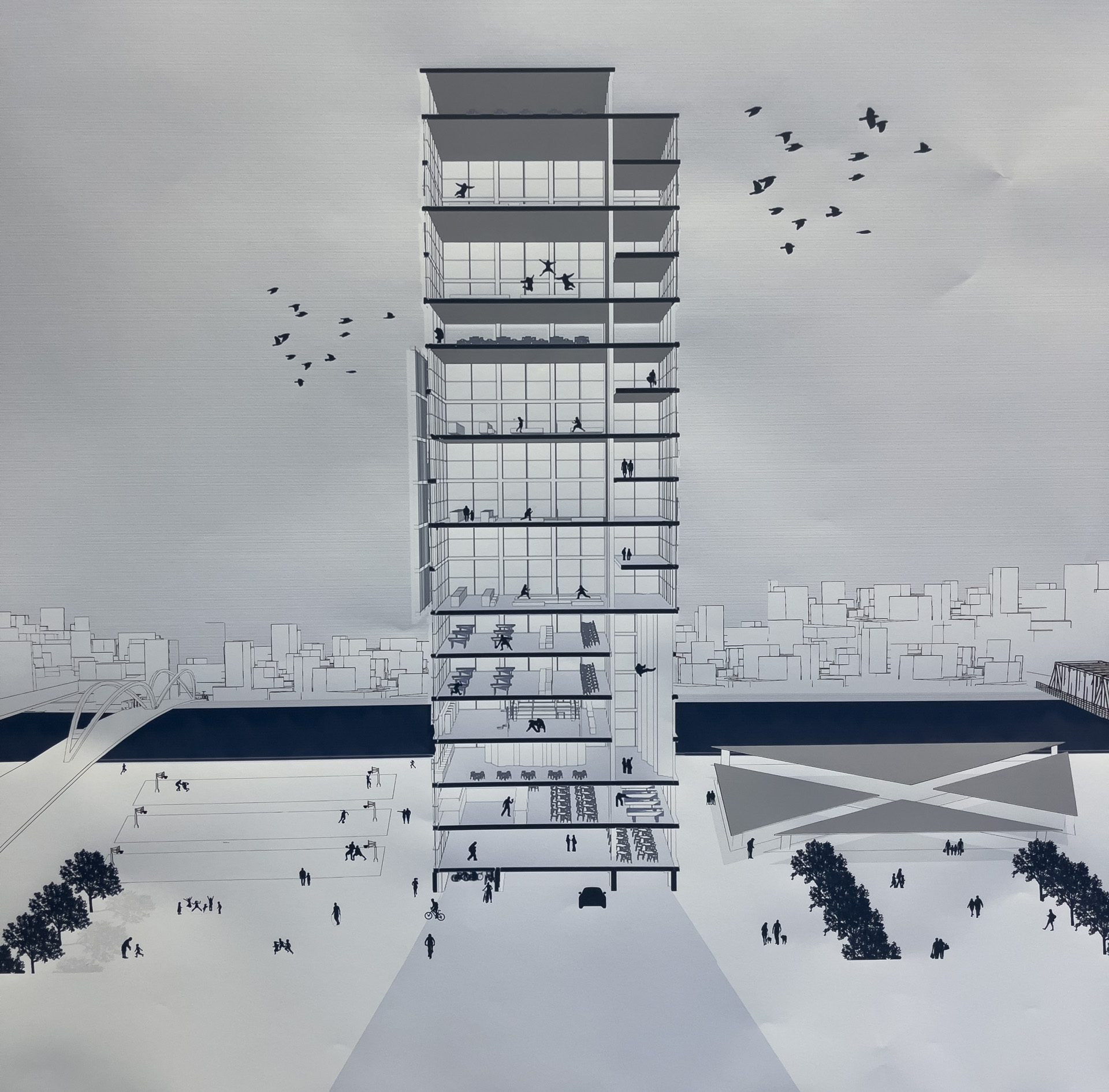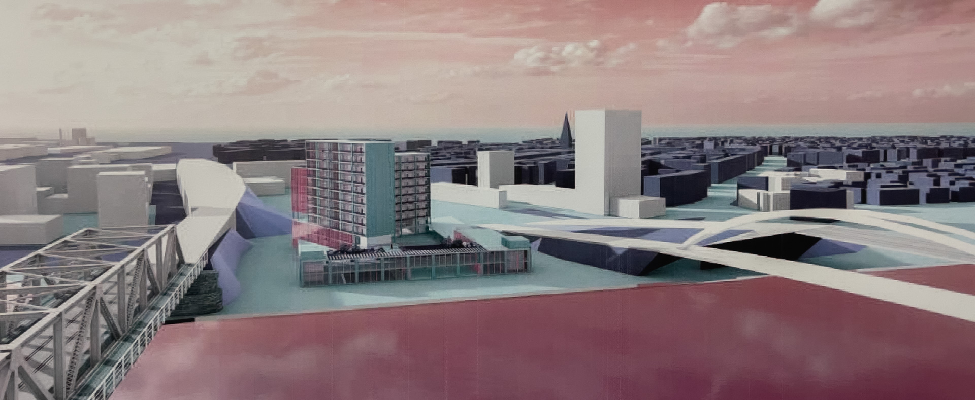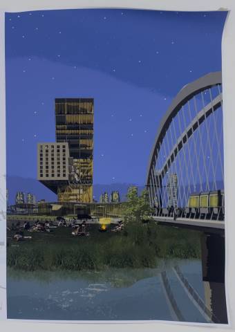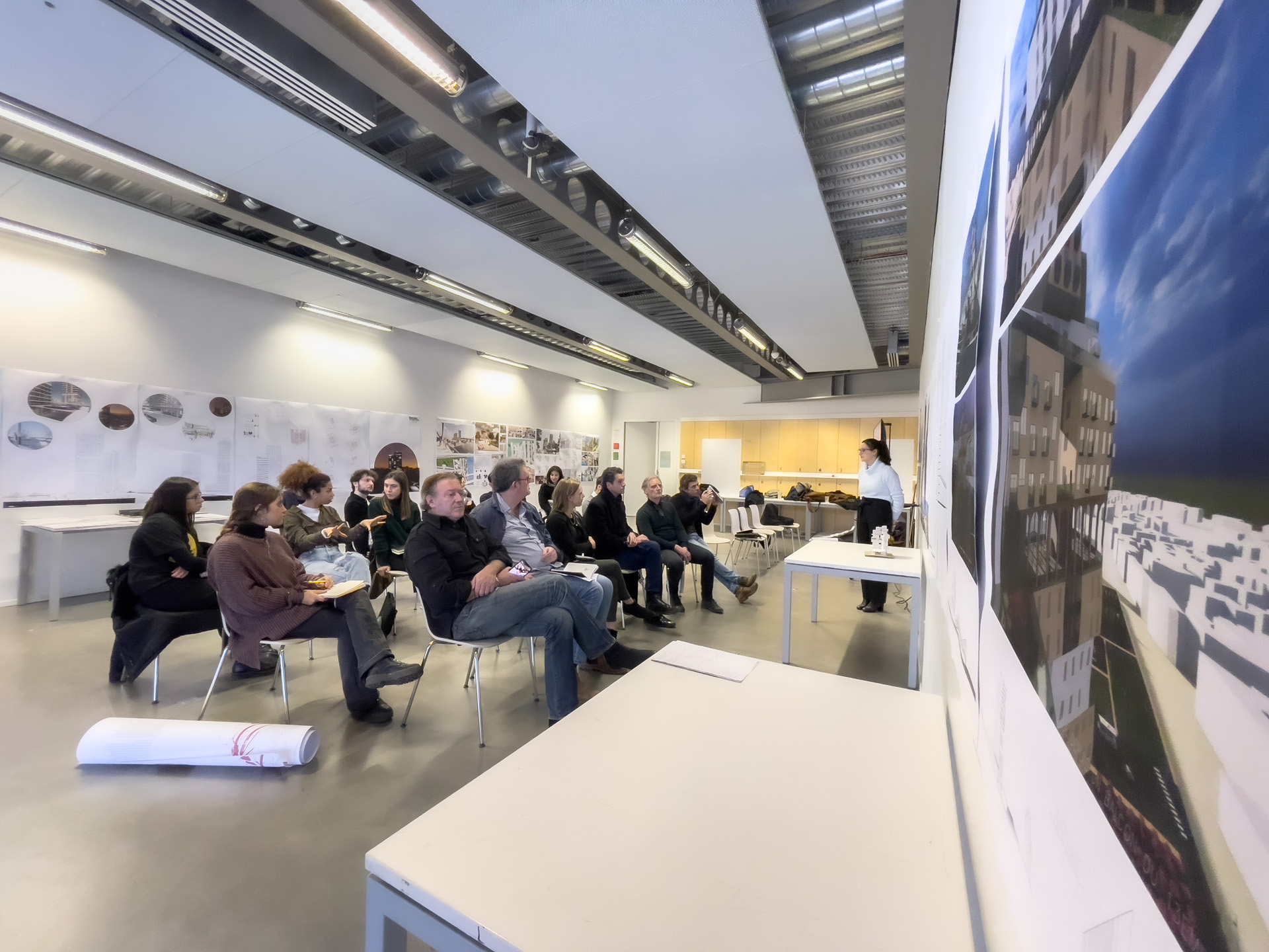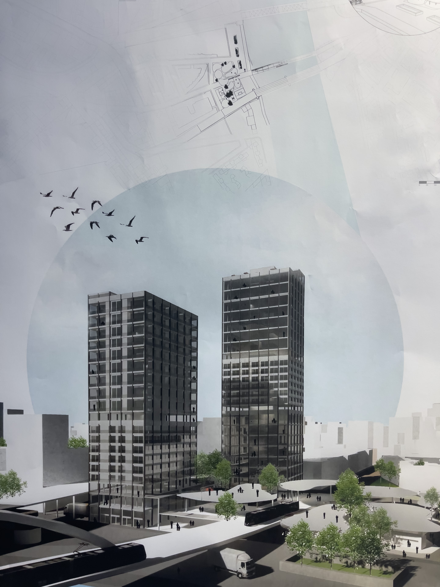 Quelques vues non exhaustives des rendus de Master, dans l’atelier Rhénan. Les projets s’intéressent au face à face Strasbourg-Kehl enfin relancé par l’arrivée du Tram, et territoire expérimental pour de prochaines grandes transformations urbaines à venir.
