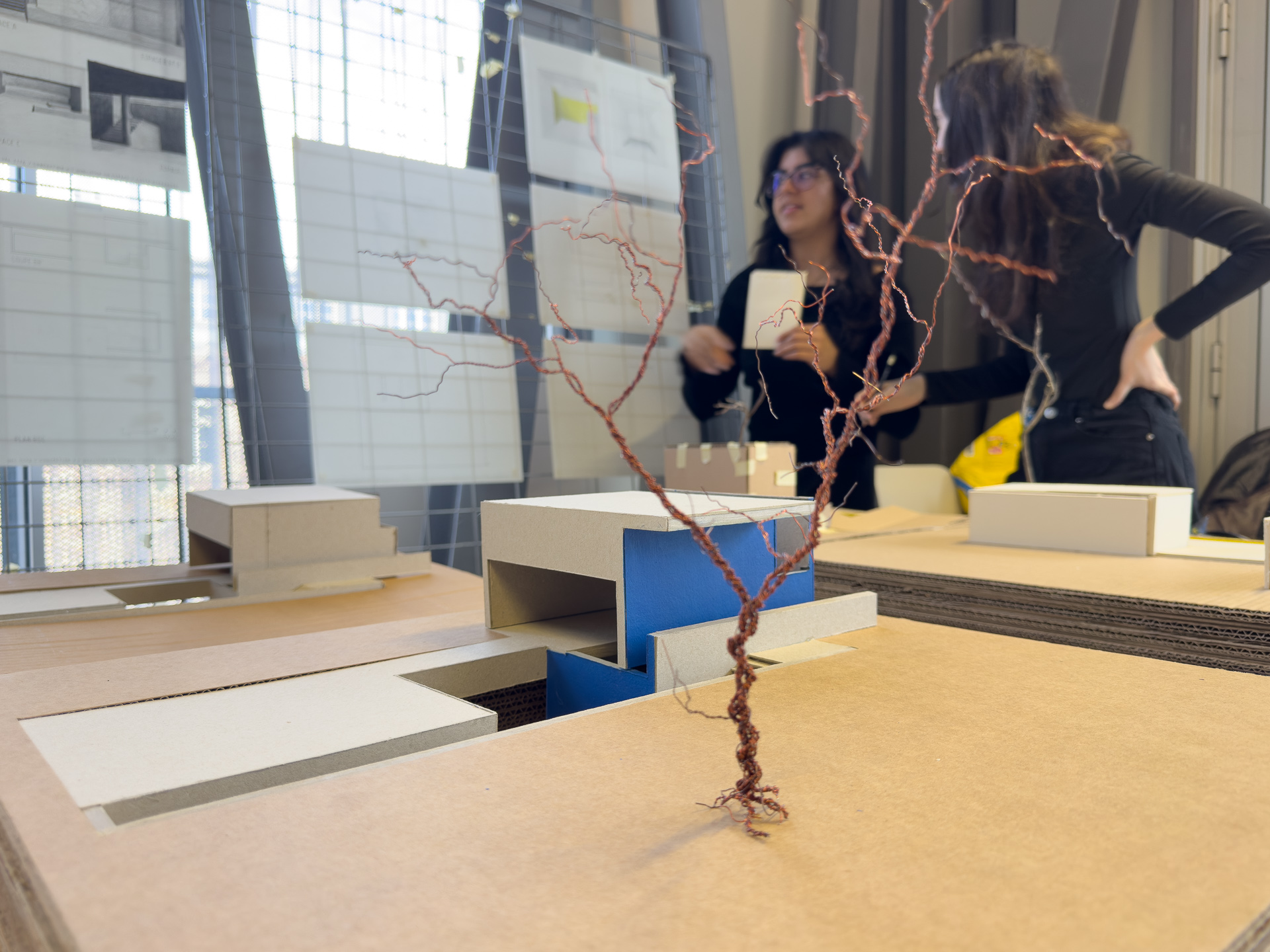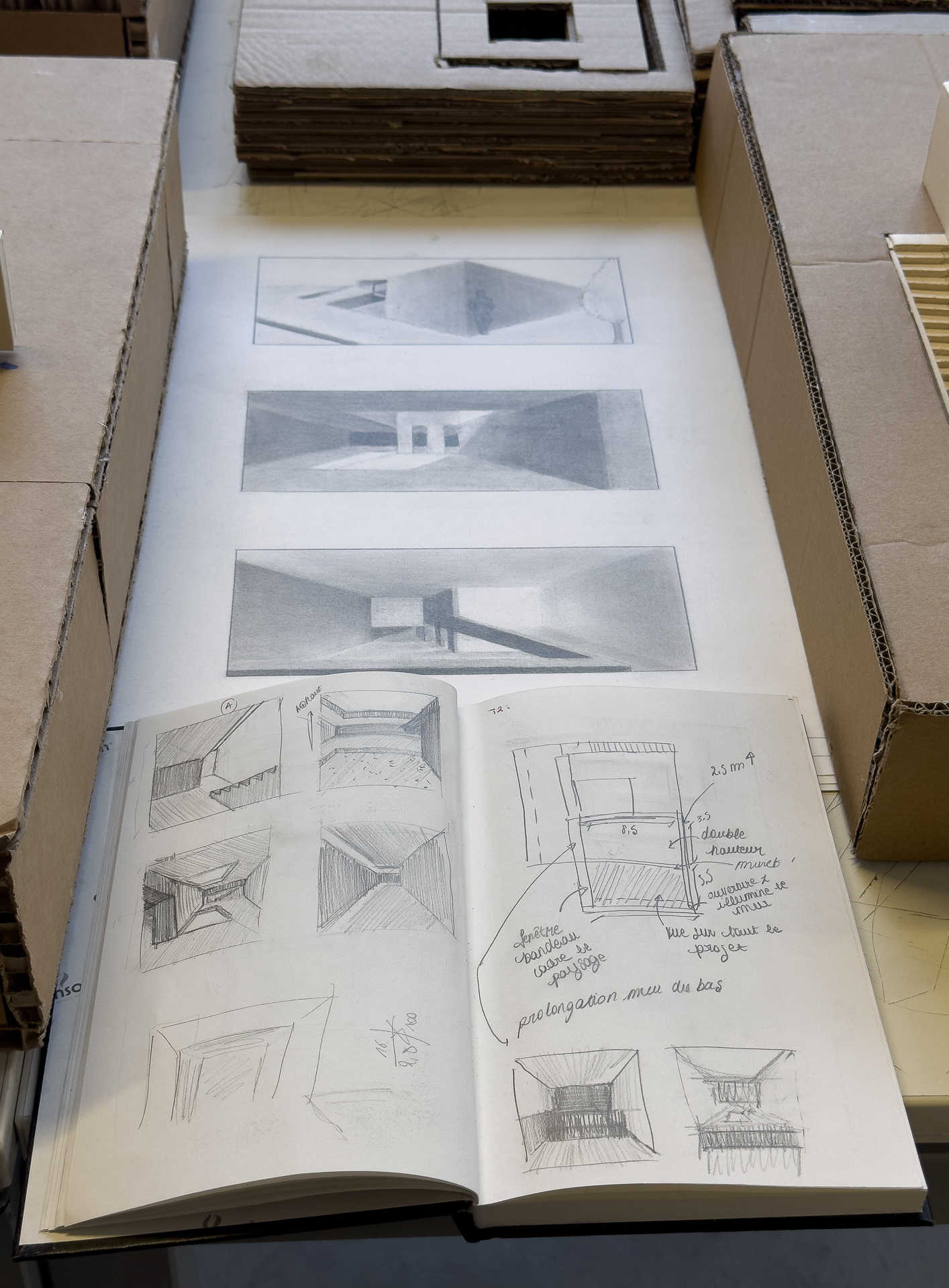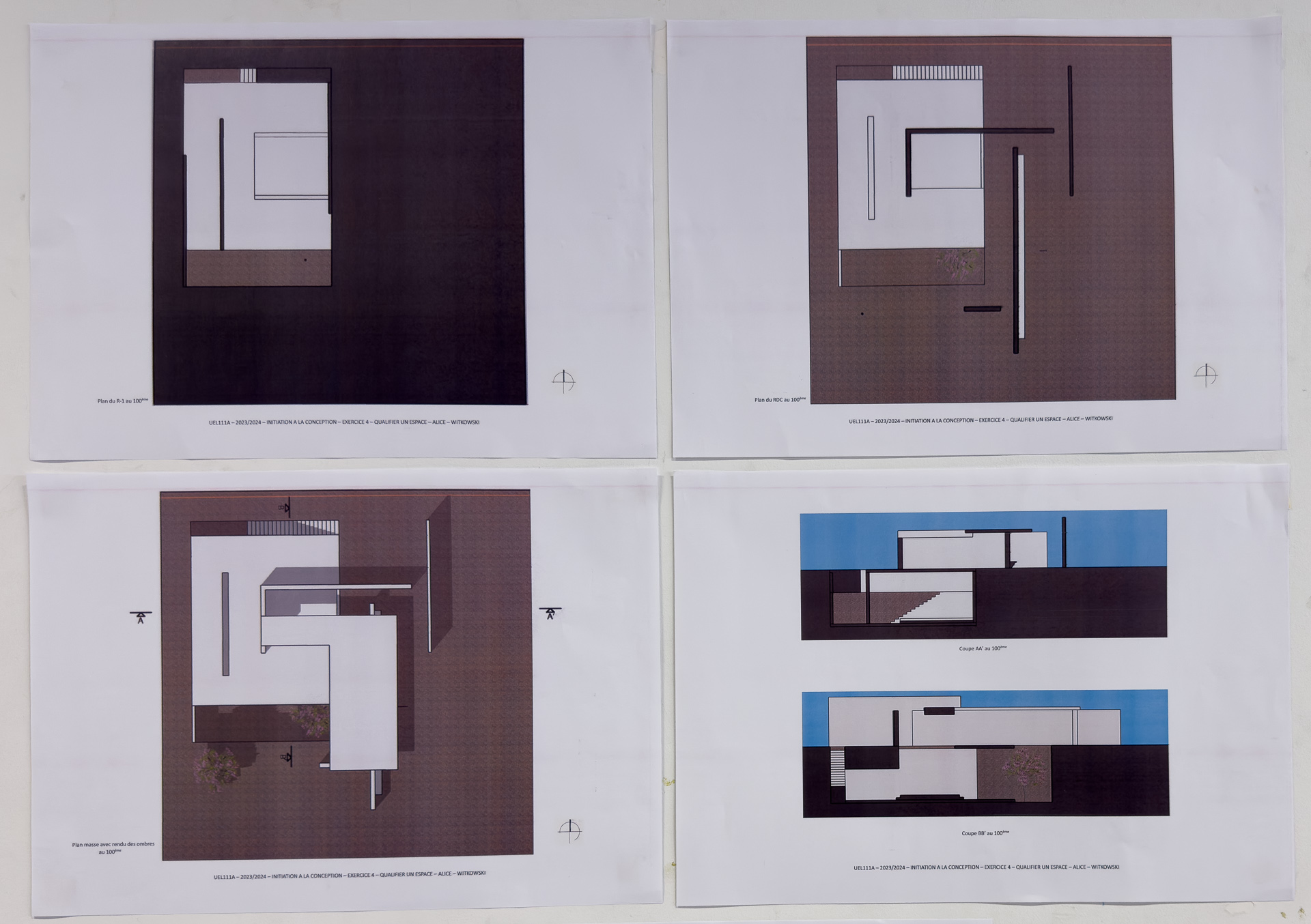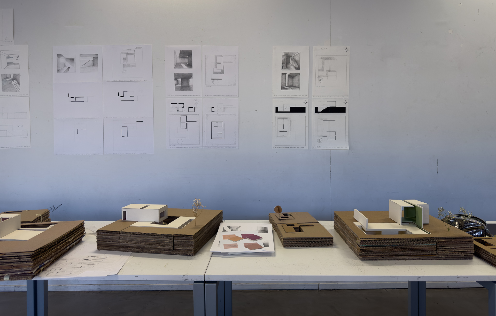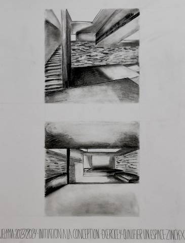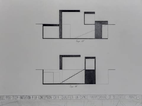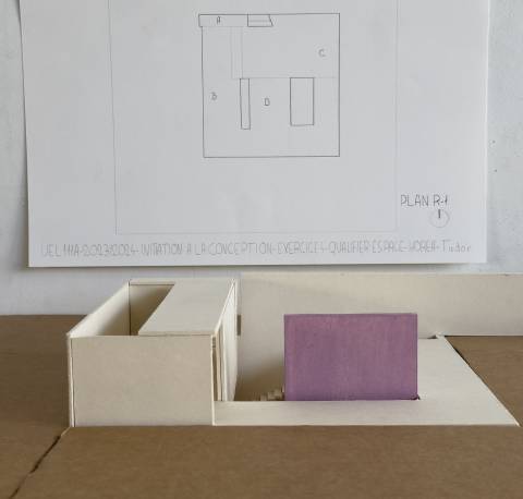 L’ensemble des exercices abordés en initiation de la conception ont pour objectif l’apprentissage progressif d’une méthodologie basée sur l’expérimentation de variantes. La fabrication d’un vocabulaire spatial, par la découverte du vide, de la lumière, amène à la qualification d’espaces et à la définition de leurs usages.